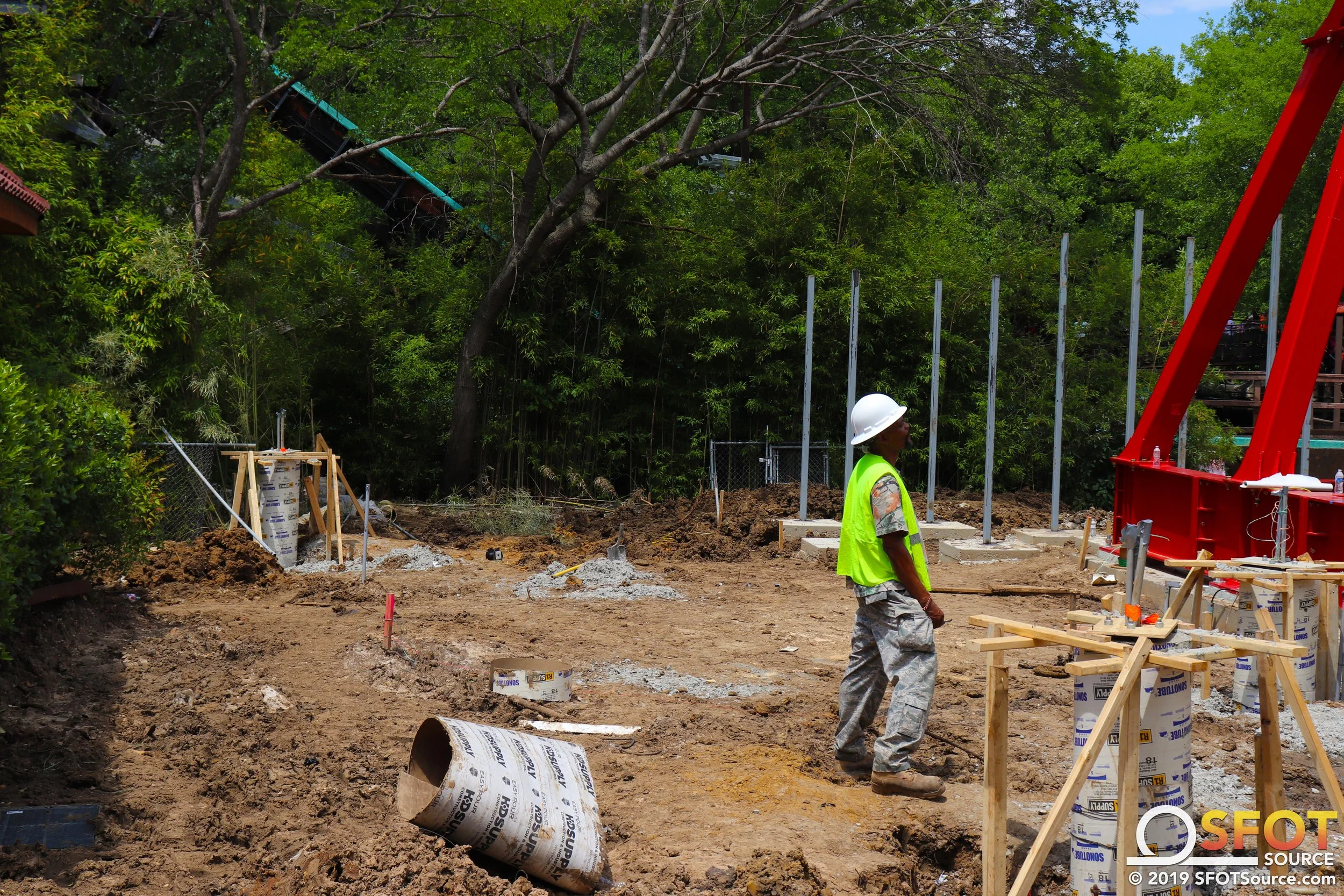 Additional footers, with electrical ran, have been installed near El Diablo. This is likely an entrance/exit area to the attraction.