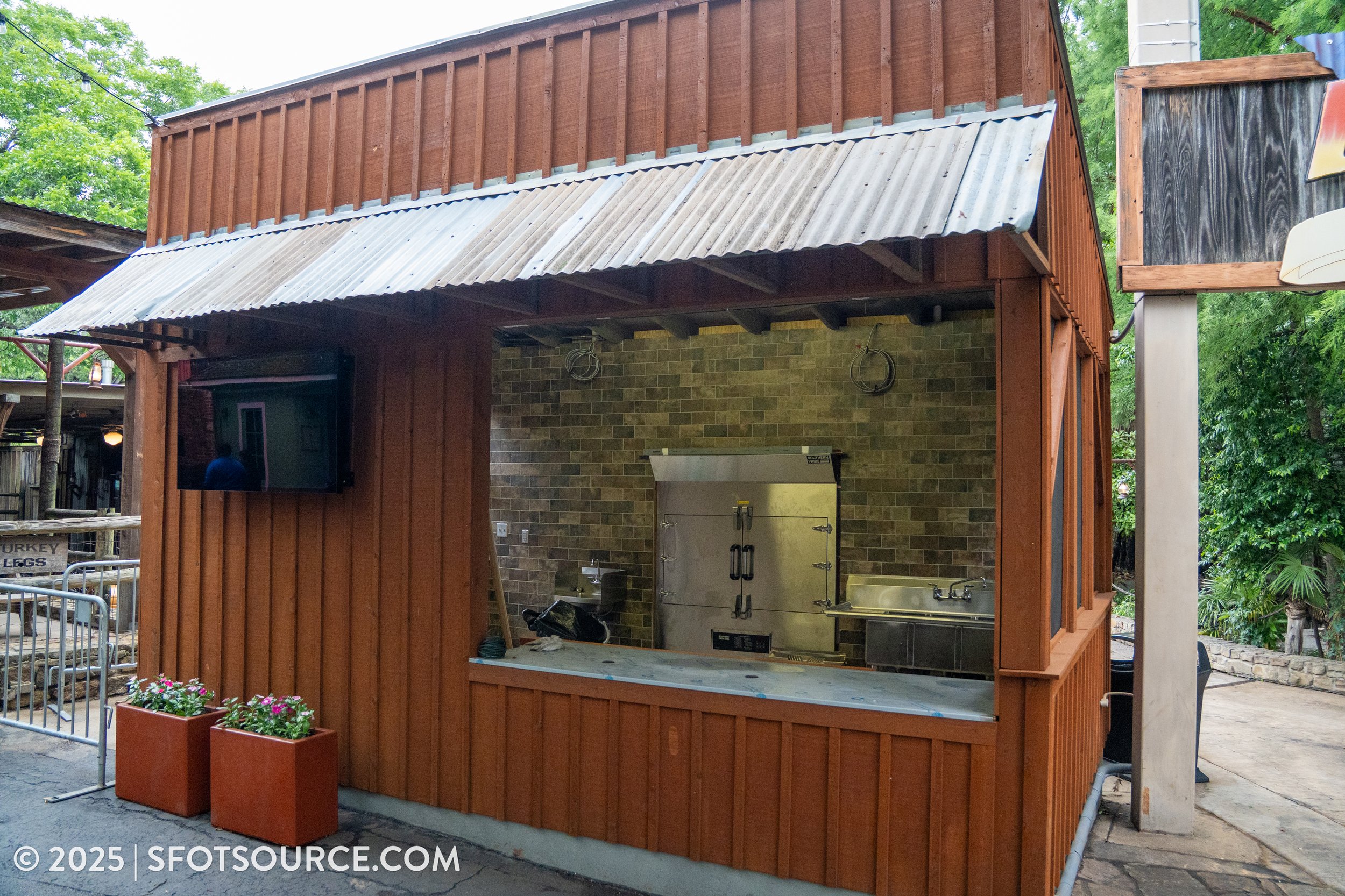 Work continues on the outdoor quick serve booth located in front of JB’s Smokehouse BBQ.